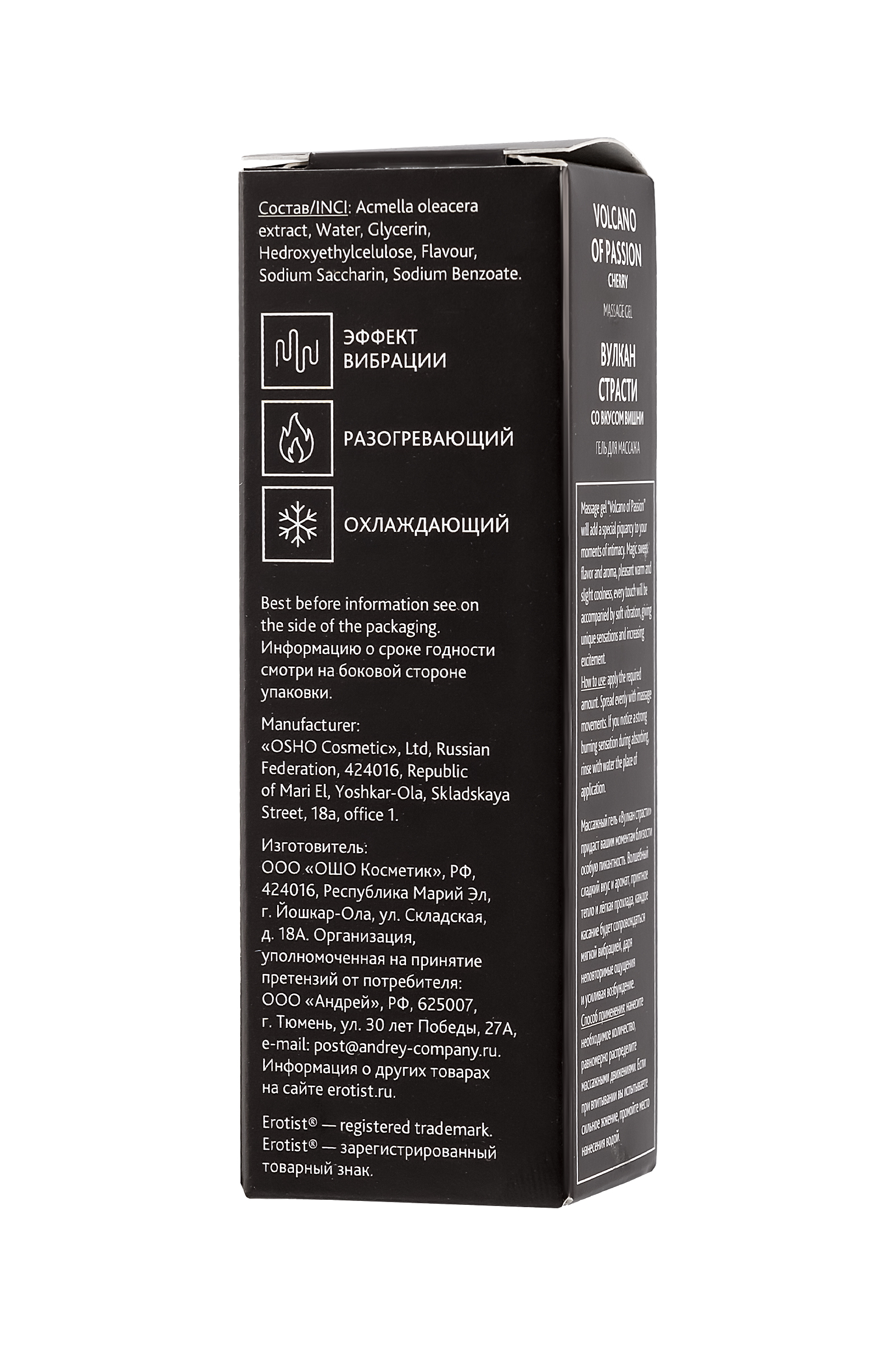 Массажный гель Эротист «Вулкан страсти» придаст вашим моментам близости особую пикантность. Волшебный сладкий вкус и аромат, приятное тепло и лёгкая прохлада, каждое касание будет сопровождаться мягкой вибрацией, даря неповторимые ощущения и усиливая возбуждение. Нанесите немного жидкого геля на интимные зоны, и через несколько секунд вы почувствуете тепло, затем в течение 2-3 минут легкую вибрацию и легкий холодок. Длительность эффекта зависит от особенностей вашего организма. Гель с вибрирующим эффектом для интимных зон На основе натуральных ингредиентов, без парабенов Вкус и аромат вишни Подходит для поцелуев и орального секса Способ применения: нанесите небольшое количество геля на кончики пальцев и коснитесь клитора и вагинальных губ, массируя. Для наружного применения.